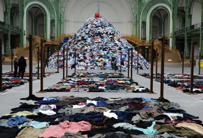 Plus loin, 69 espaces rectangulaires sont alignés sur trois rangées le long de la nef sur près de 200 mètres. Chacun de ces rectangles est recouvert de vêtements posés à plat au sol, face contre terre. Enfin, sous la coupole de la nef se trouve un amoncellement de vêtements mesurant environ 15 mètres de hauteur. À son sommet, un grappin relié à une grue de chantier prélève quelques-uns de ces vêtements, les soulève dans les airs avant de les relâcher.